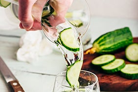 13. Gurken halten uns auch von innen frisch und hydriert. Mit etwa 97 % ist sie das Lebensmittel mit dem höchsten Wassergehalt.