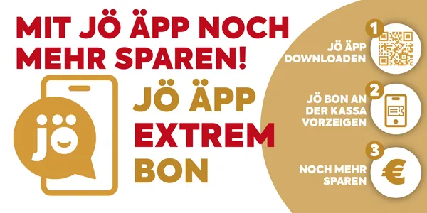 Einfach Extrem Bon in der jö äpp und jö Karte an der Kassa vorzeigen und noch mehr sparen.