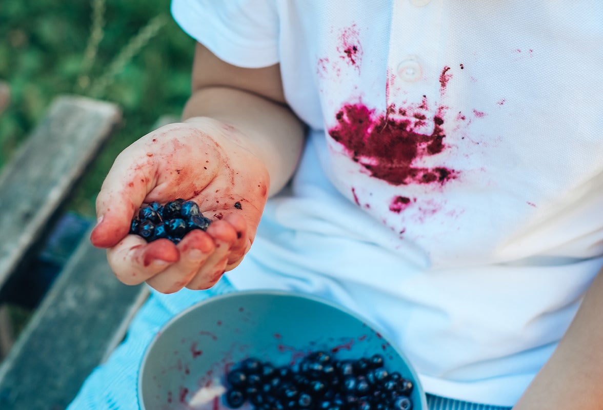 Bei so viel Beeren-Genuss kann auch mal etwas daneben gehen. Einem Fleck auf der Kleidung sollte man mit Zitronensäure zu Leibe rücken und ihn damit beträufeln. Einwirken lassen und Kleidungsstück wie gewohnt waschen.