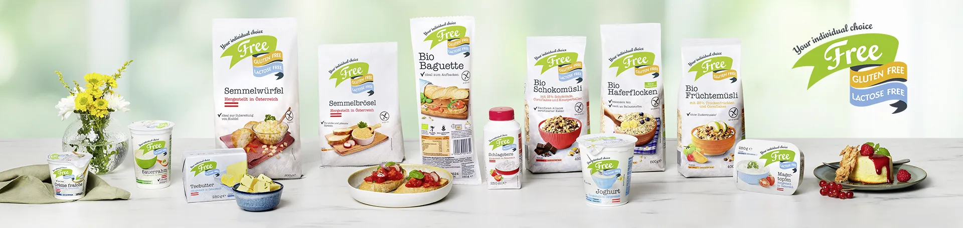 Wir bei Free - Your individual choice haben es uns daher zur Aufgabe gemacht, Ihnen ein breites Produktsortiment an gluten- und laktosefreien Produkten anzubieten, welche nicht nur bedenkenlos verzehrt und in höchster Qualität produziert werden, sondern auch noch unfassbar gut schmecken. Von glutenfreiem Müsli und glutenfreiem Semmelbrösel bis hin zu laktosefreiem Magertopfen und laktosefreiem Schlagobers. Bei Free - Your individual choice müssen Sie auf nichts verzichten.