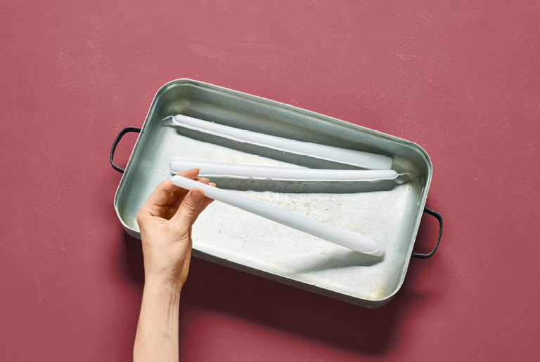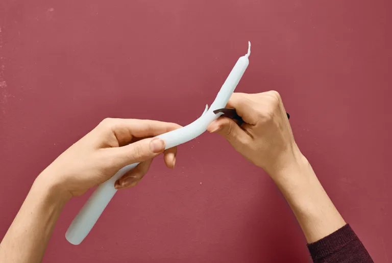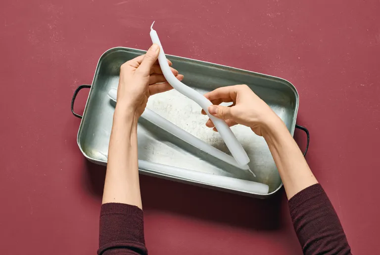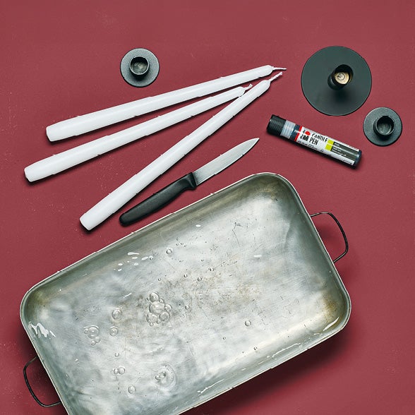 - Stabkerzen, mindestens 25 cm lang, mit Kerzenhaltern
