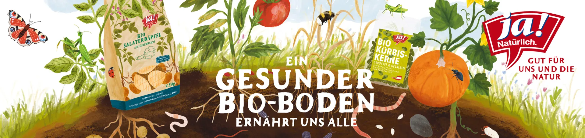 Da die Ja! Natürlich Bäuerinnen und Bauern komplett auf chemisch-synthetische Spritz- und Düngemittel verzichten, kannst du dir sicher sein, dass mit den Ja! Natürlich Bio-Produkten nur rückstandsfreie Lebensmittel auf deinem Teller landen, die du mit gutem Gewissen frisch vom Feld genießen kannst – vom Boden, wenn du so willst.
