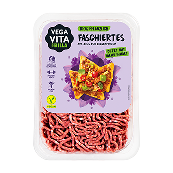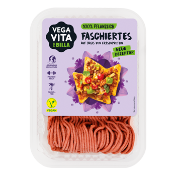 Das Vegavita Faschierte auf Basis von Erbsenprotein ist ein wahrer Allrounder. Egal ob in der italienischen oder mexikanischen Küche: In Österreich hergestellt, proteinreich und ohne Palmöl ist es immer ein Genuss.