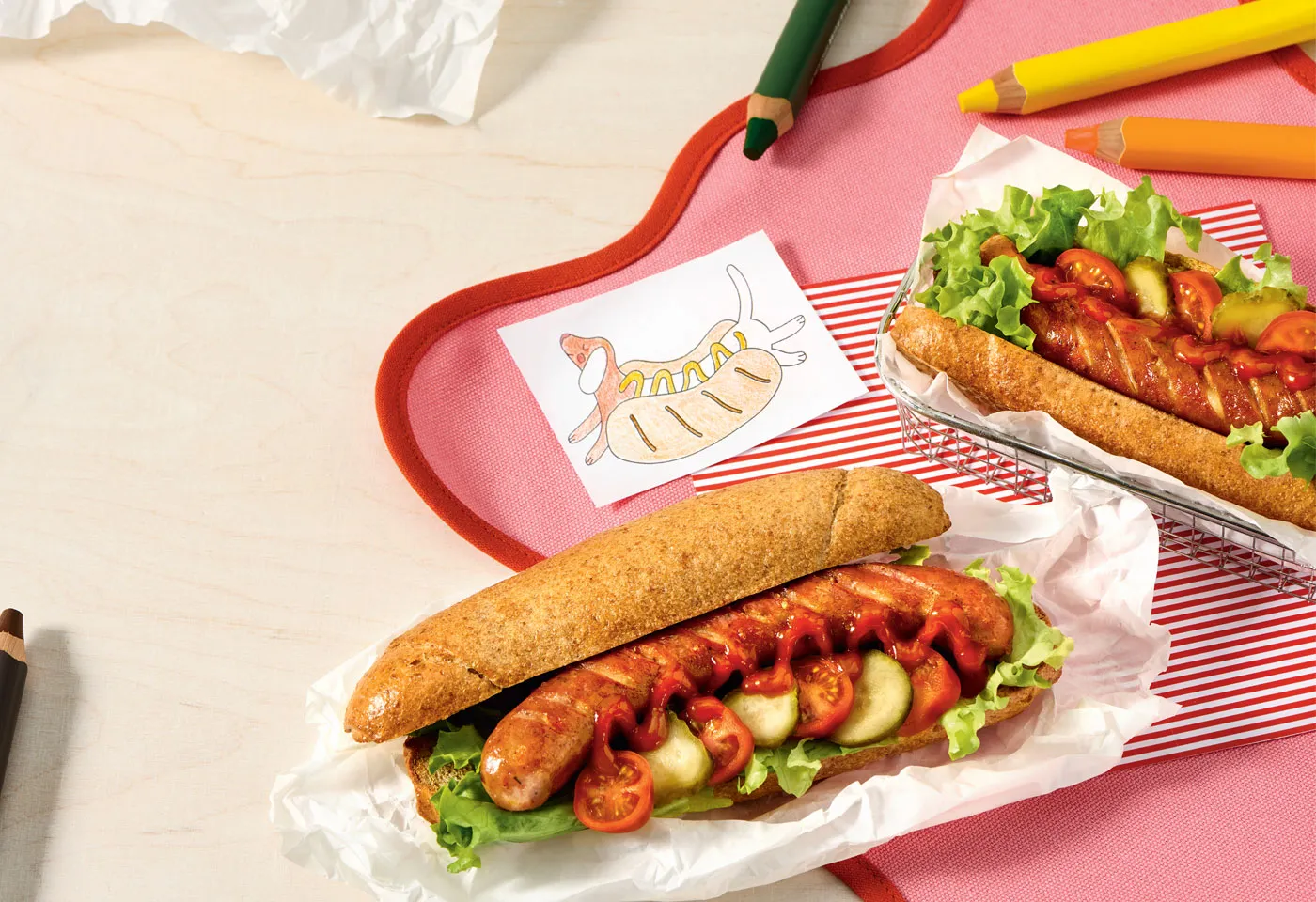 Bio-Käsekrainer-Hotdog im Grahamweckerl
