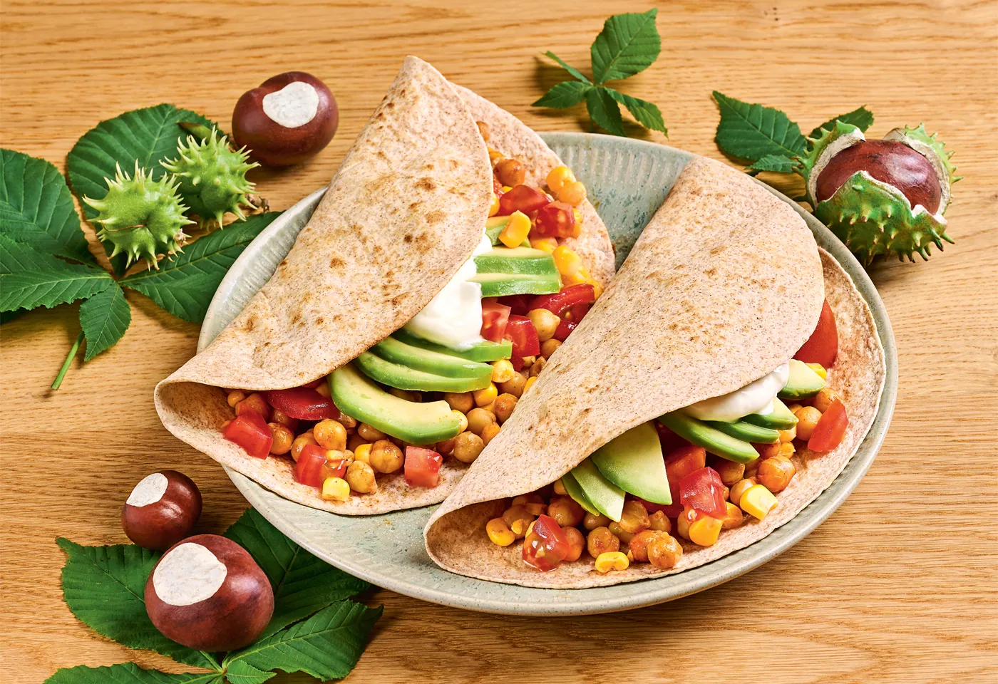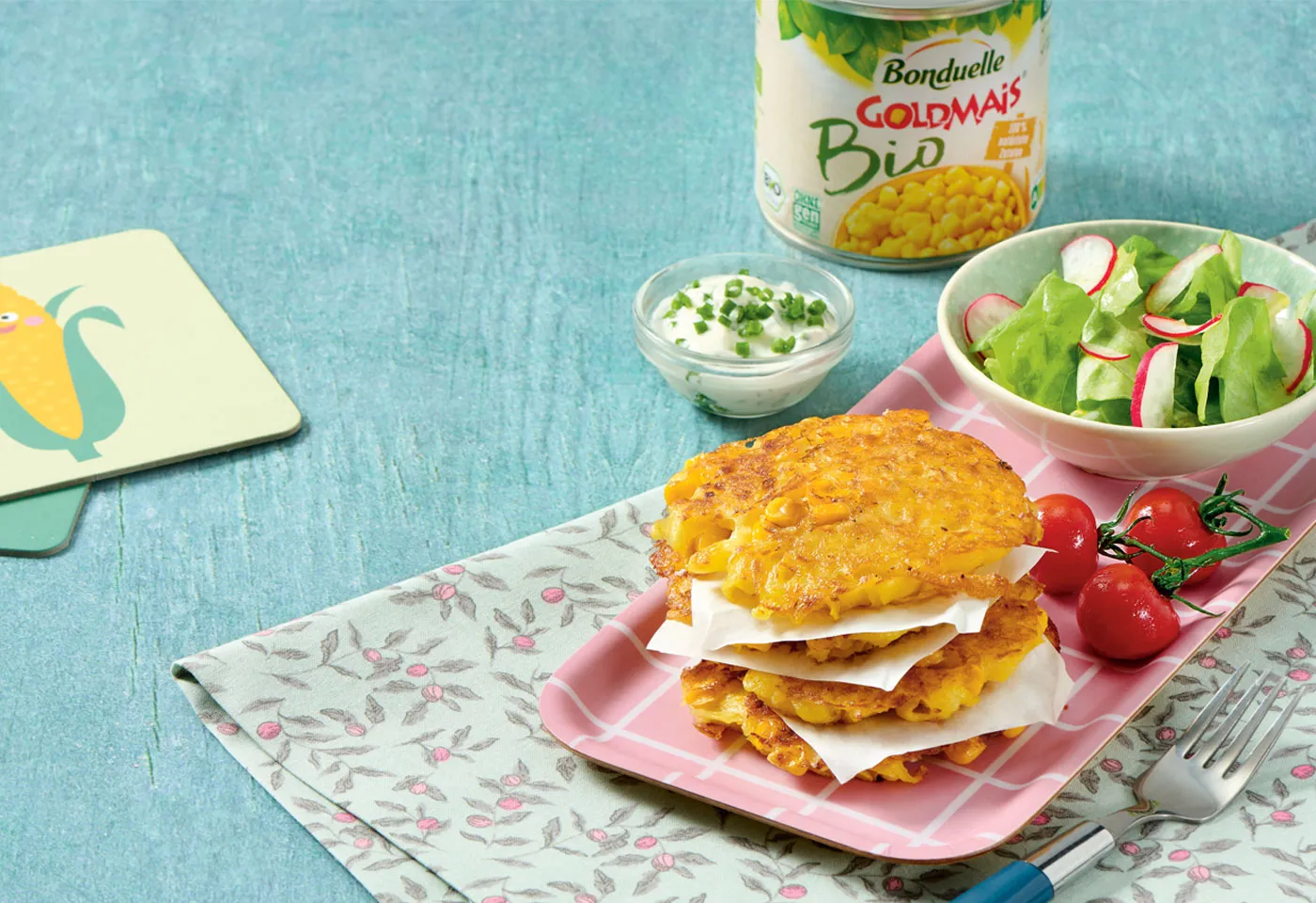 Mais-Erdäpfel-Laibchen mit Ofentomaten und Dip