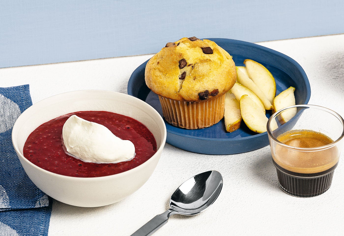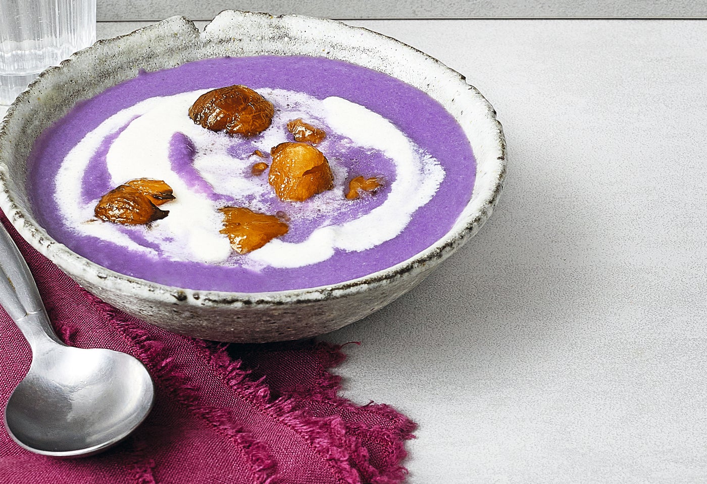Rotkraut-Weichsel-Suppe mit glasierten Maroni