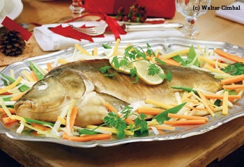 Weihnachtskarpfen mit Gemüse in der Folie gegart