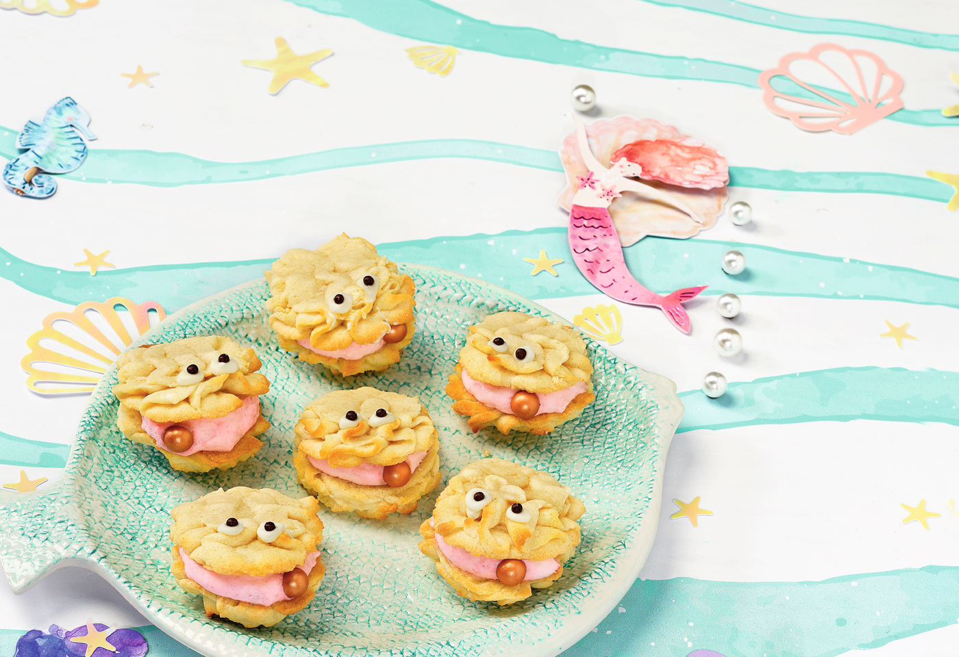 Süße Muscheln mit Himbeercreme