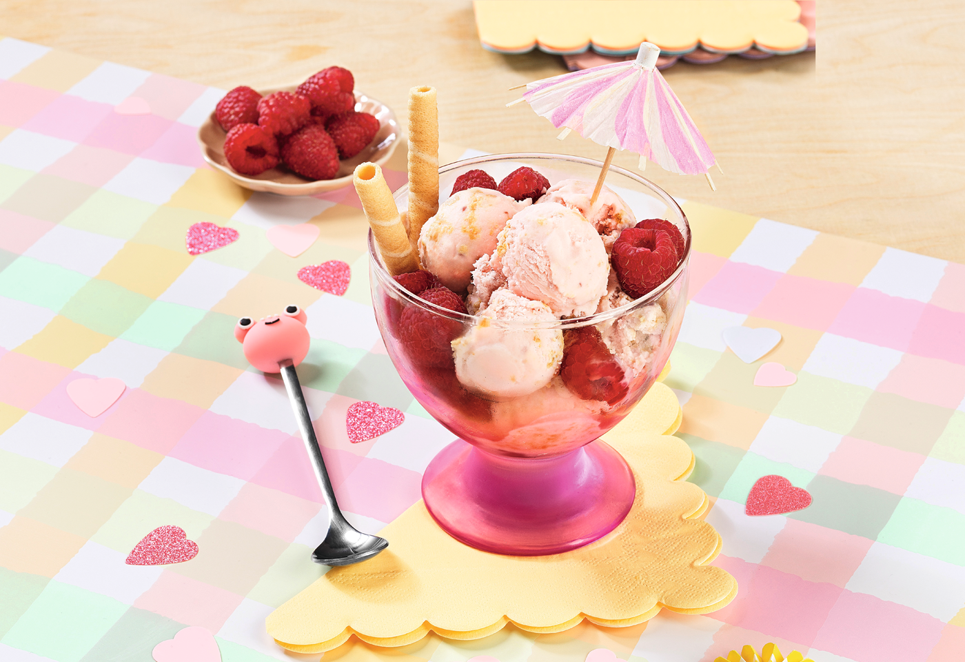 Bio-Himbeer-Vanille-Eis mit Orangenkeksen