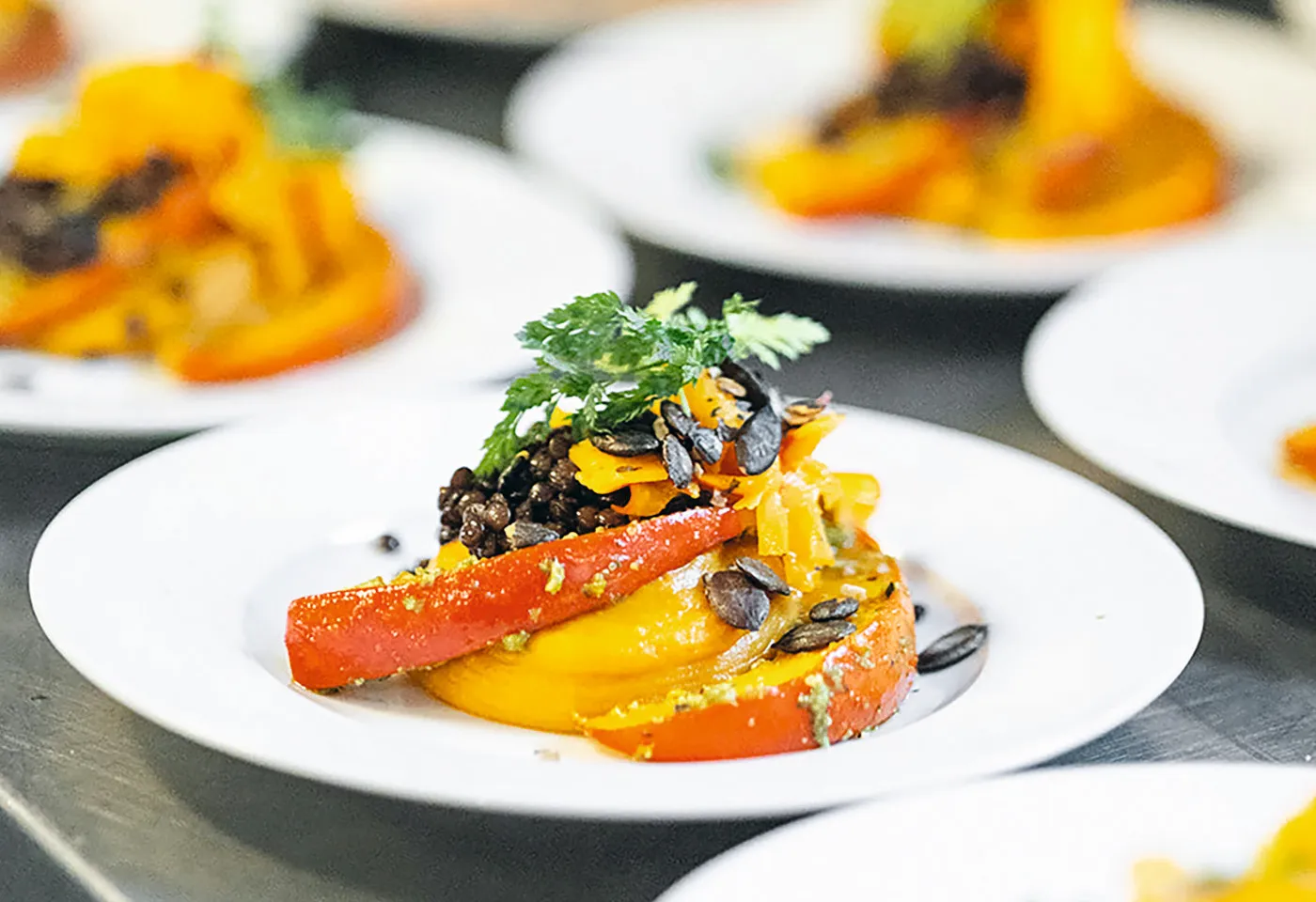 Rauchige Harissa-Linsen mit Kürbis, Apfel und Zitronen-Seidentofu