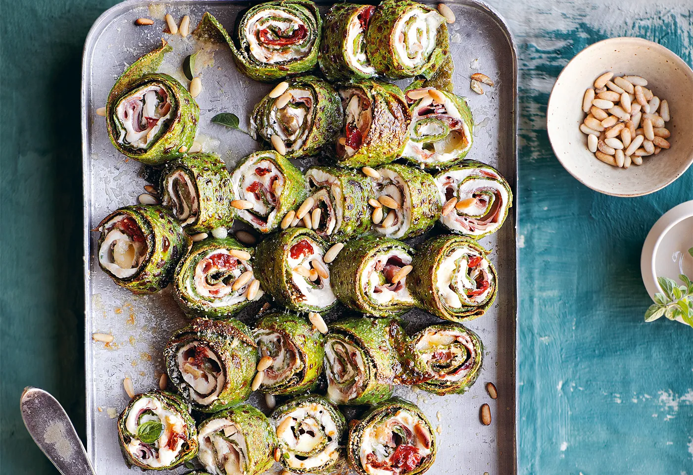 Überbackene Kräuter-Palatschinken-Röllchen