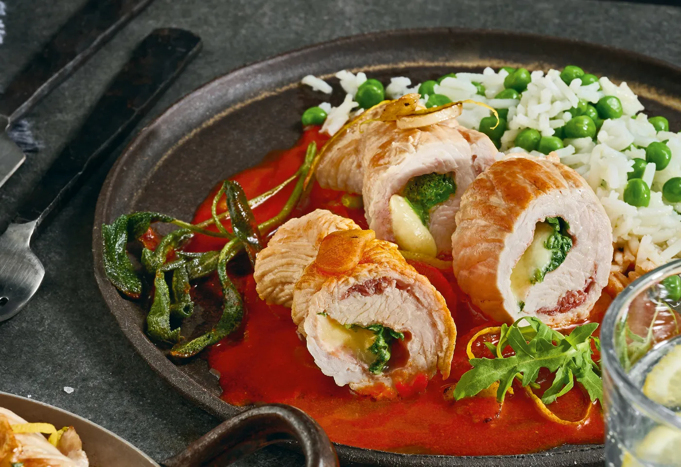 Putenrouladen mit Prosciutto, Mozzarella und Rucola