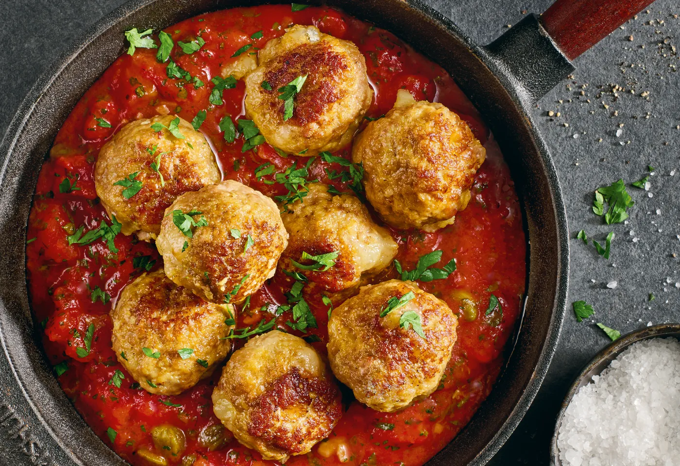 Polpette mit Ziegenkäse in Kapern-Tomatensauce