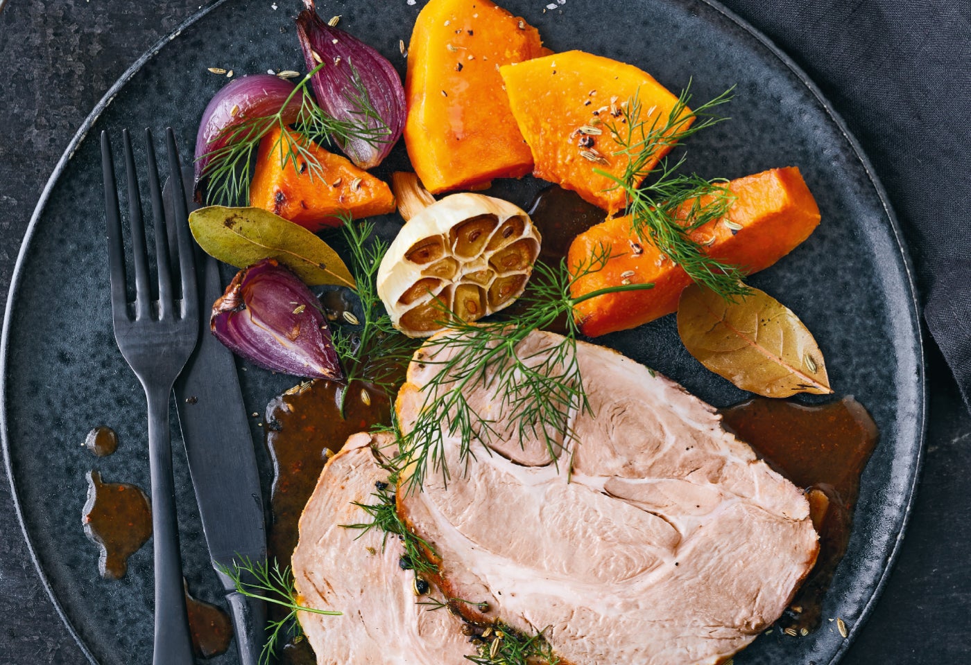 Dille-Fenchel-Schweinsbraten mit Ofenkürbis