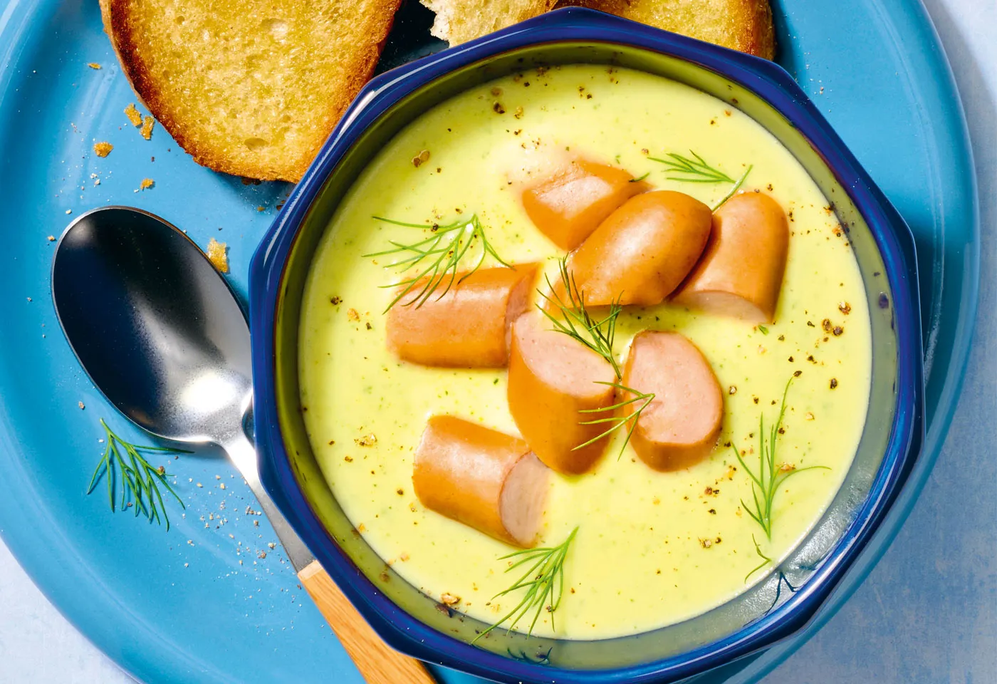 Zucchinicreme-Suppe mit Frankfurtern