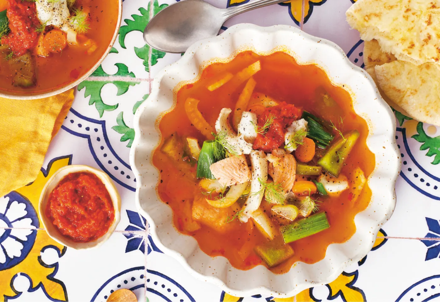 Fischsuppe mit Gemüse und Ajvar