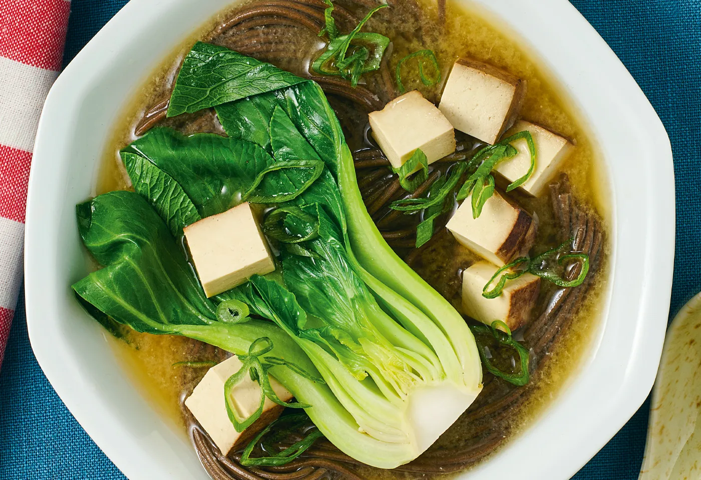Misosuppe mit Sobanudeln, Pak Choi und Tofu
