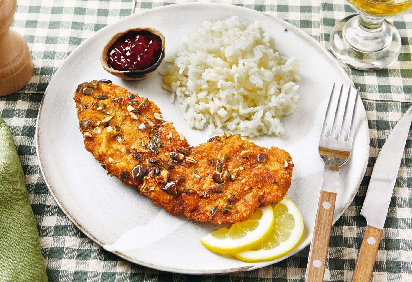 Steirische Truthahn-Apfel-Satéspieße mit Kürbistampf