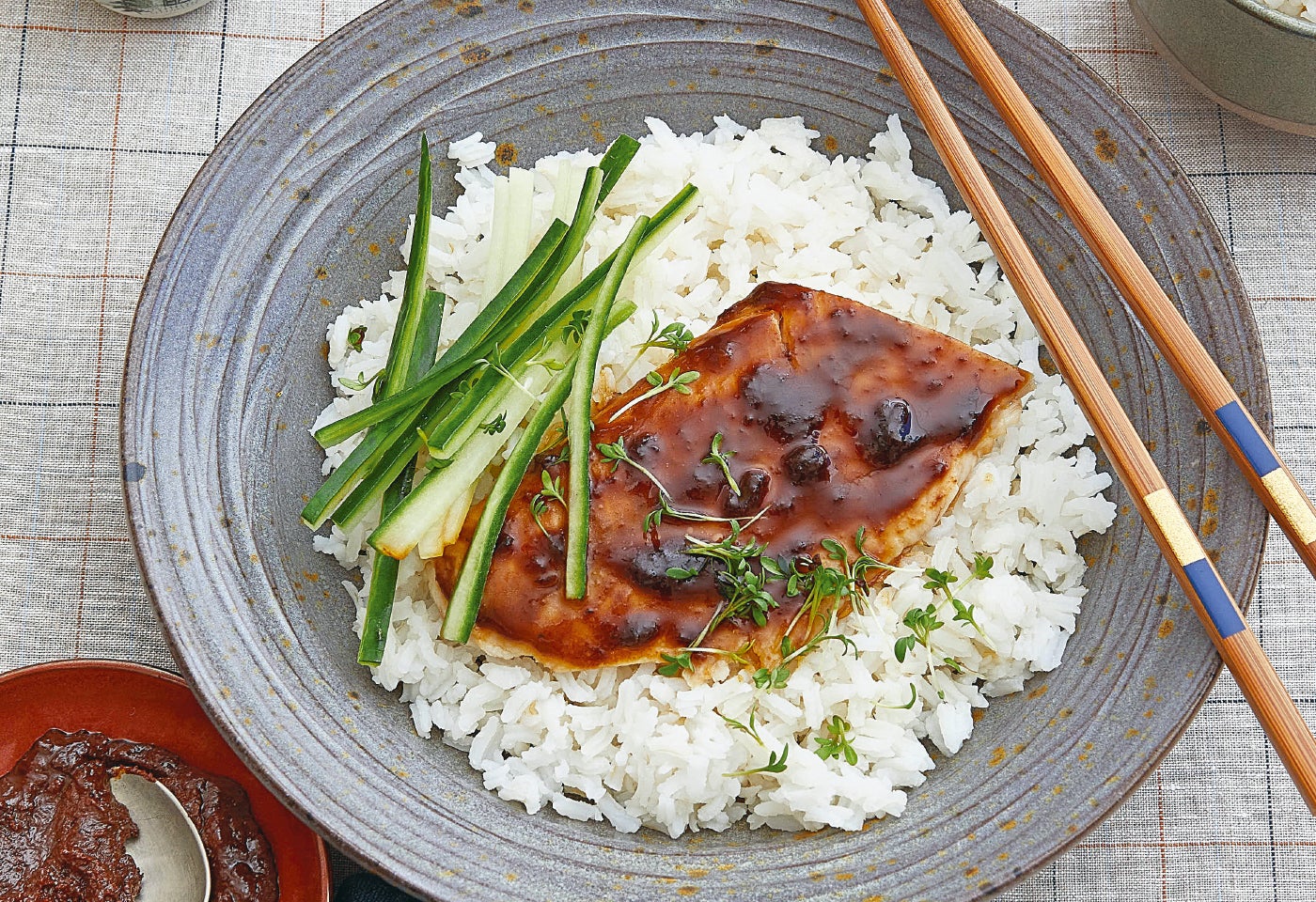 Miso-lackierter Räuchersaibling mit mariniertem Reis