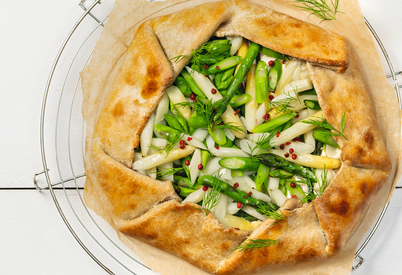 Ziegenkäse-Galette mit Spargel und Rucolasalat