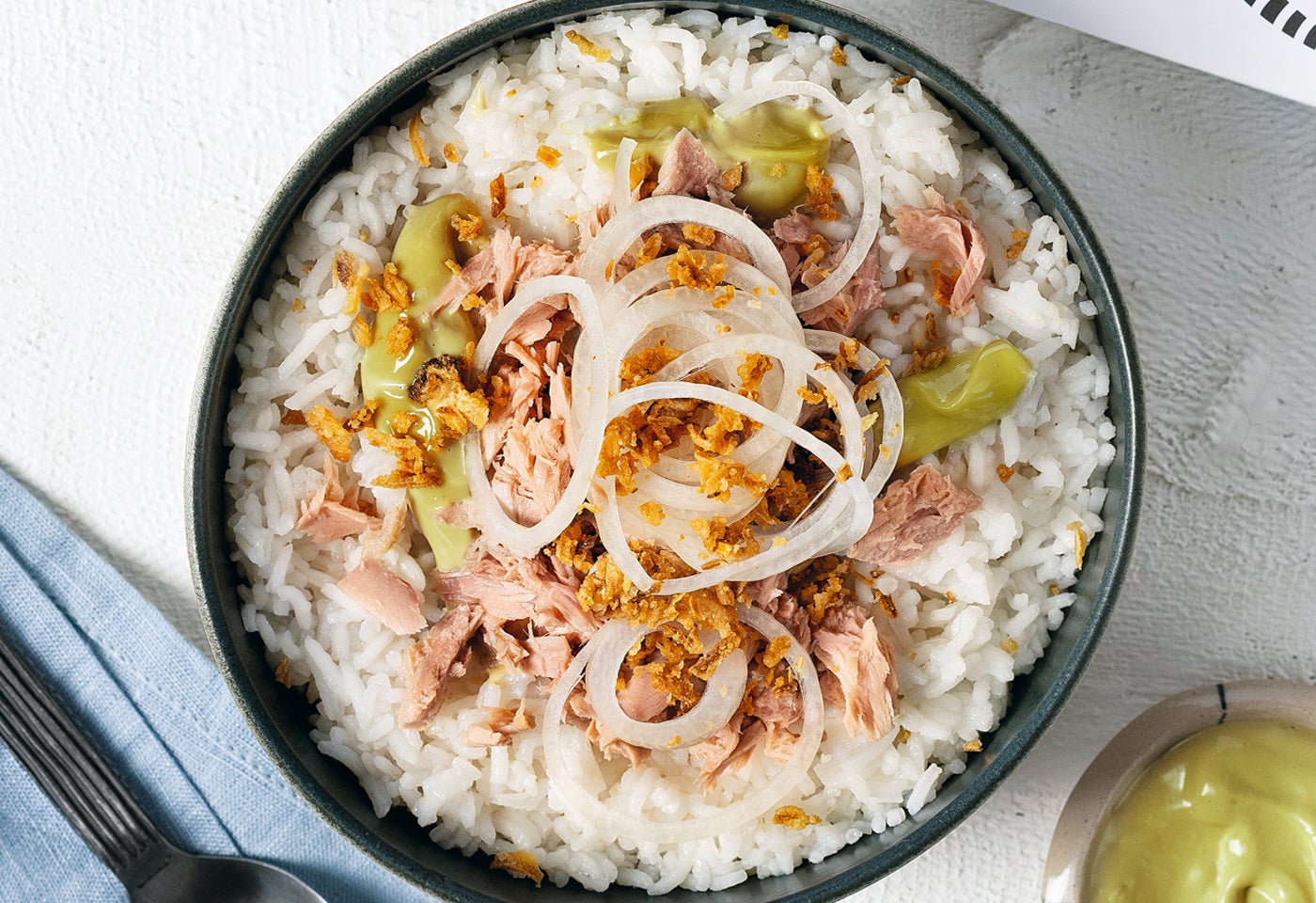Thunfisch-Reis-Bowl mit Kernöl-Mayonnaise