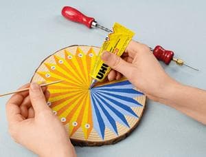 - spitzer Holzstab, ca. 15 cm lang, der Durchmesser hängt vom Bohrloch ab