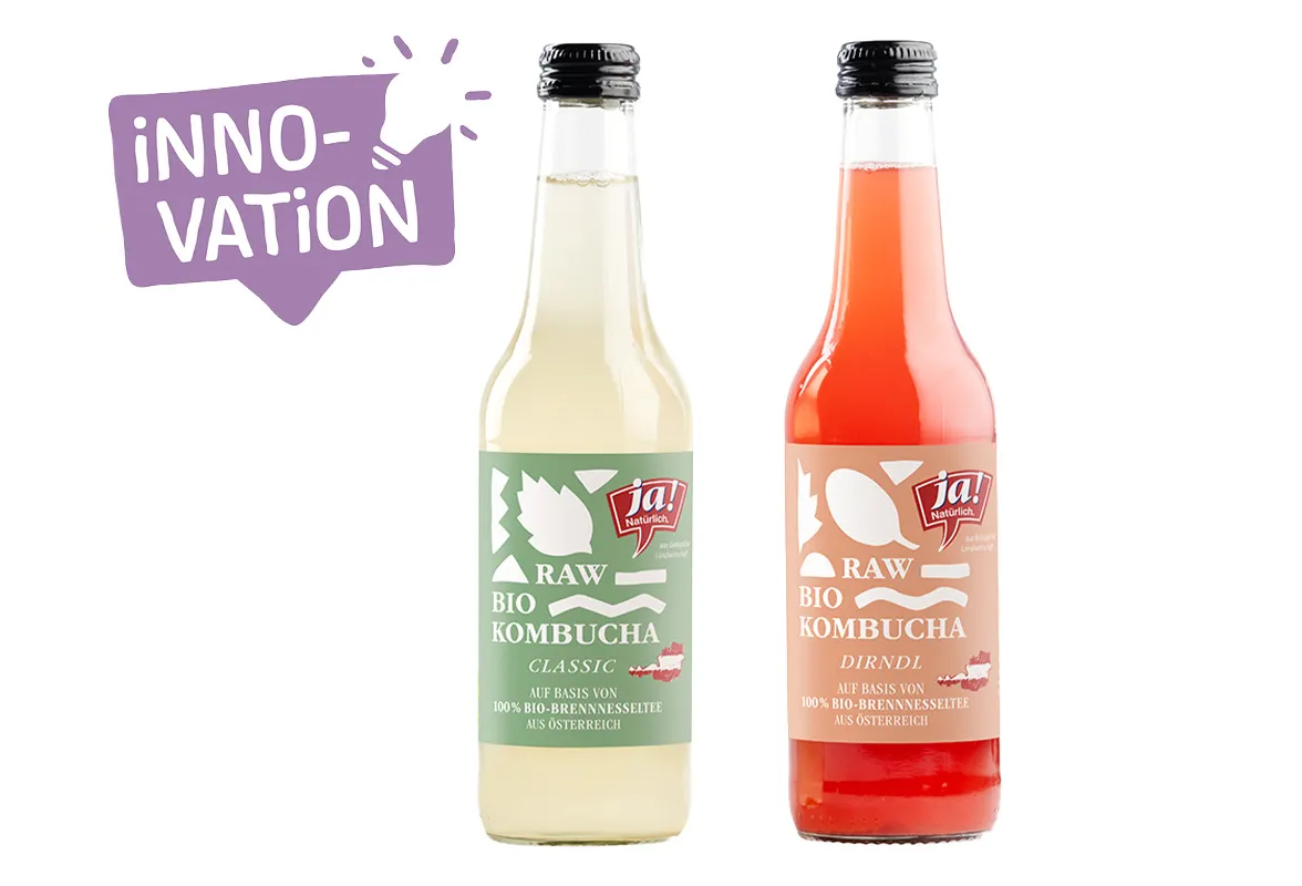 Der Ja! Natürlich Bio Kombucha ist ein echtes Naturtalent aus österreichischen Zutaten. Er wird sorgfältig aus hochwertigem Bio-Brennnesseltee gebraut und nicht pasteurisiert – so bleiben die lebendigen Fermentationskulturen erhalten. Erhältlich ist der Kombucha in zwei erfrischenden Sorten: So entsteht ein fein perlendes, leicht säuerliches Geschmackserlebnis mit natürlicher Frische.
