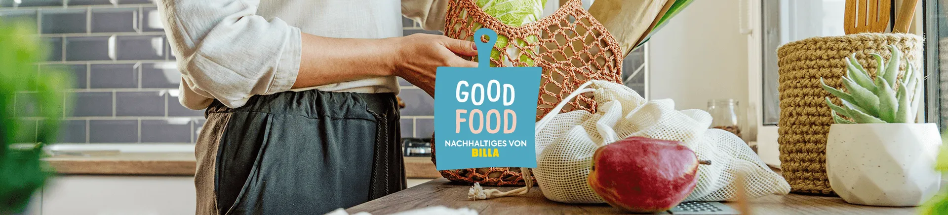 Good Food ist Essen das gut tut – uns selbst, unserer Umwelt, dem Klima und den Tieren und Menschen. Wir möchten allen einen Zugang zu bewusstem Genuss geben und fördern deswegen gesunde und nachhaltige Ernährung durch das BILLA-Lebensmittelsortiment. Unseren Kund:innen soll es so einfach wie möglich gemacht werden, sich bewusst und nachhaltig zu ernähren und das auch noch mit bestem Geschmack. BILLA bietet ein großes Sortiment an nachhaltigen, innovativen und zukunftsorientierten Lebensmitteln an. Und durch Kommunikation und klare Kennzeichnung werden die wichtigsten Informationen schnell und einfach übermittelt. Die attraktive Preispolitik soll ein nachhaltigerer Lebensstil leistbar machen.