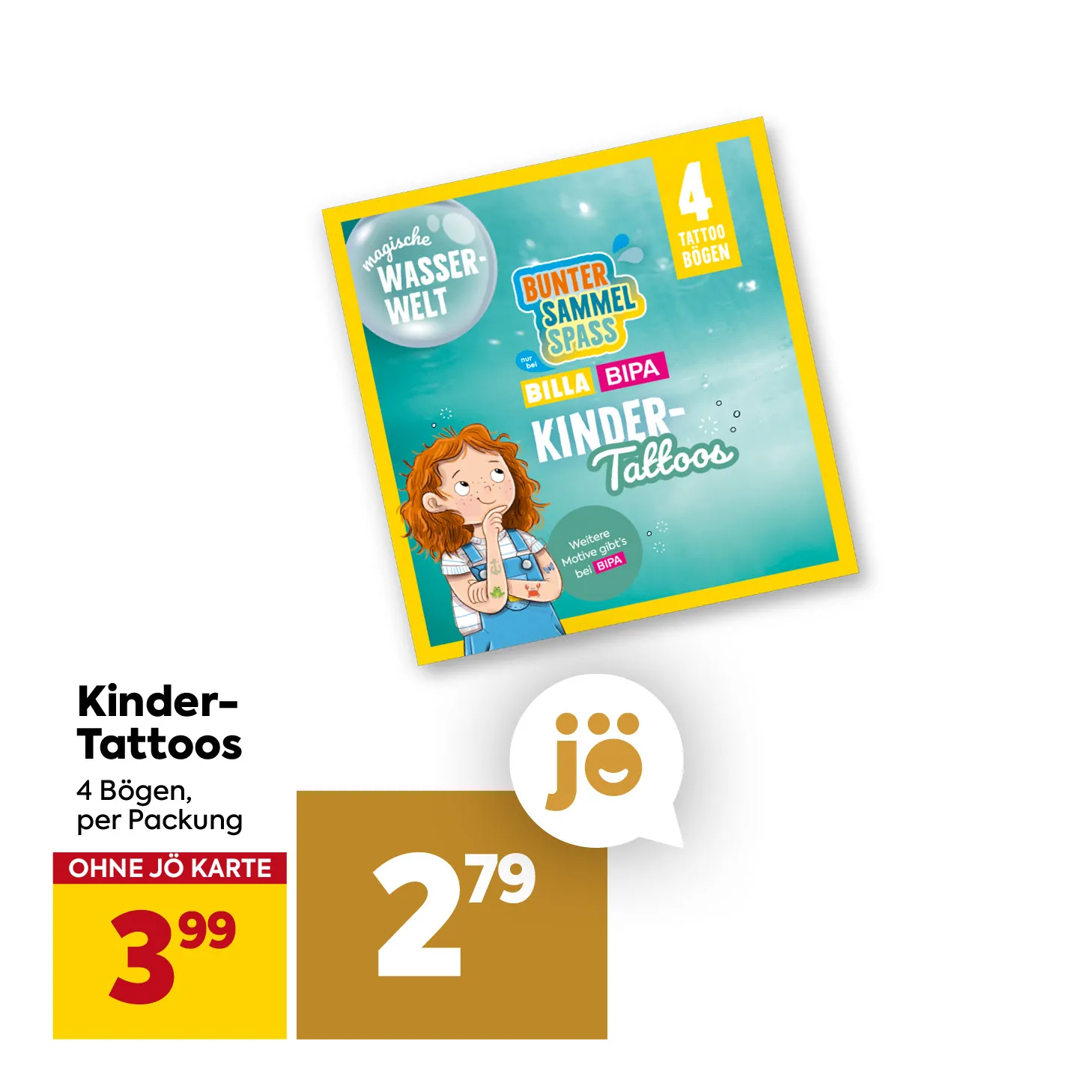- Tolle Extras: exklusives BILLA Experimentierset sowie Kinder-Tattoos und Badekugeln von BI Kids